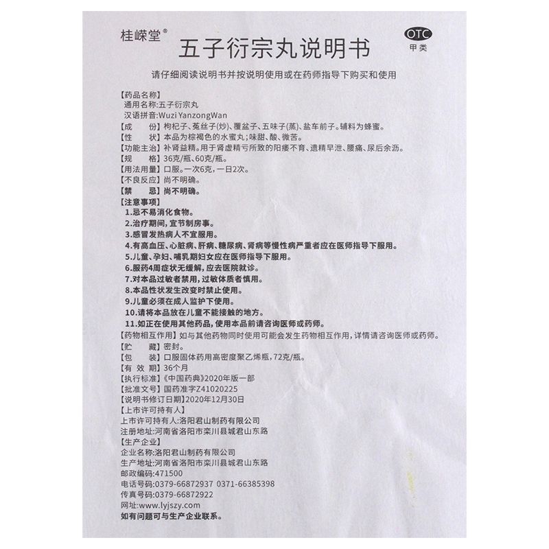 桂嵘堂 五子衍宗丸 补肾益精;用于肾虚精亏所致的阳痿不育,遗精早泄,尿后余沥,腰痛等